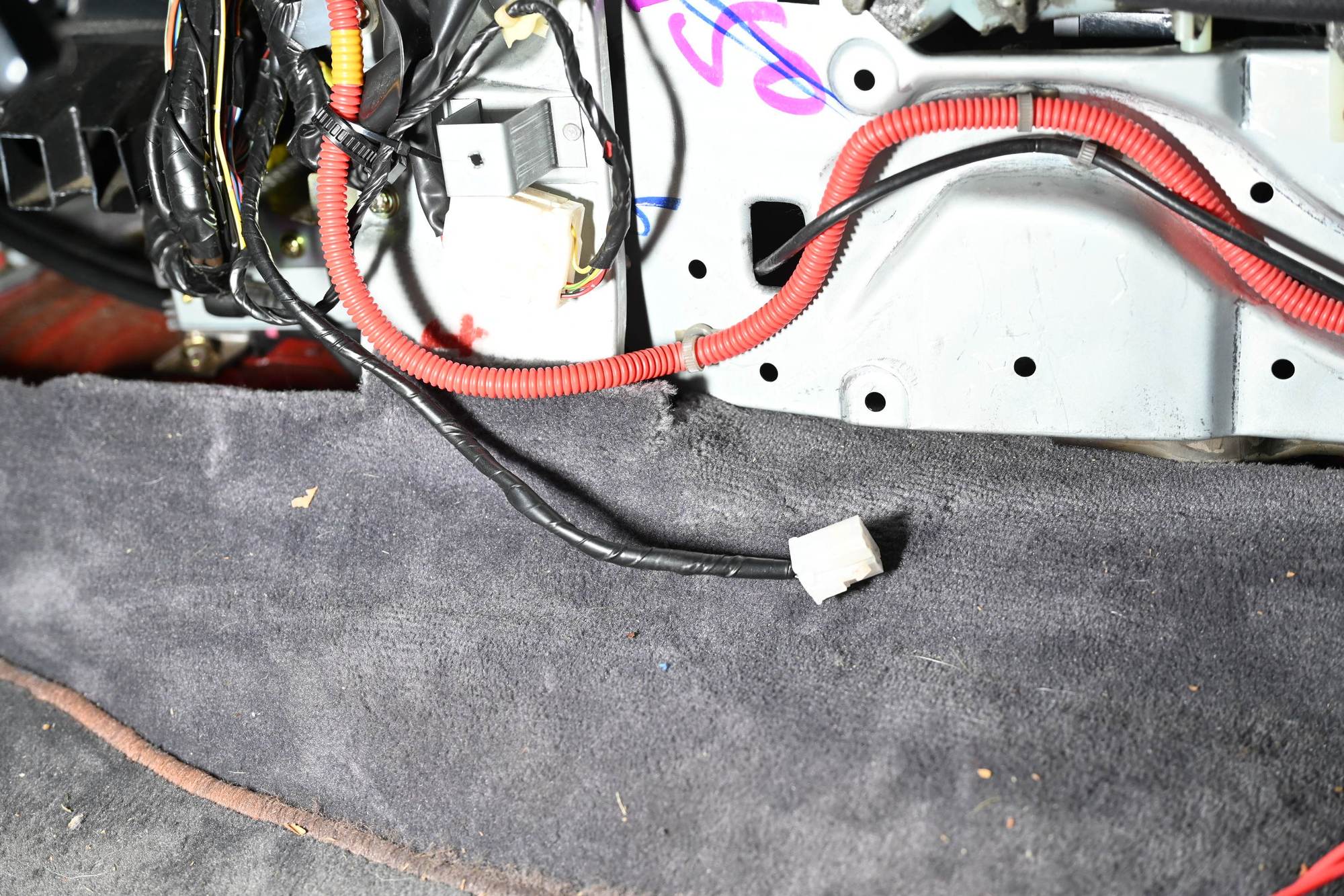 Secondly, does anyone know what the 4-pin white connector lying on the floor is for?