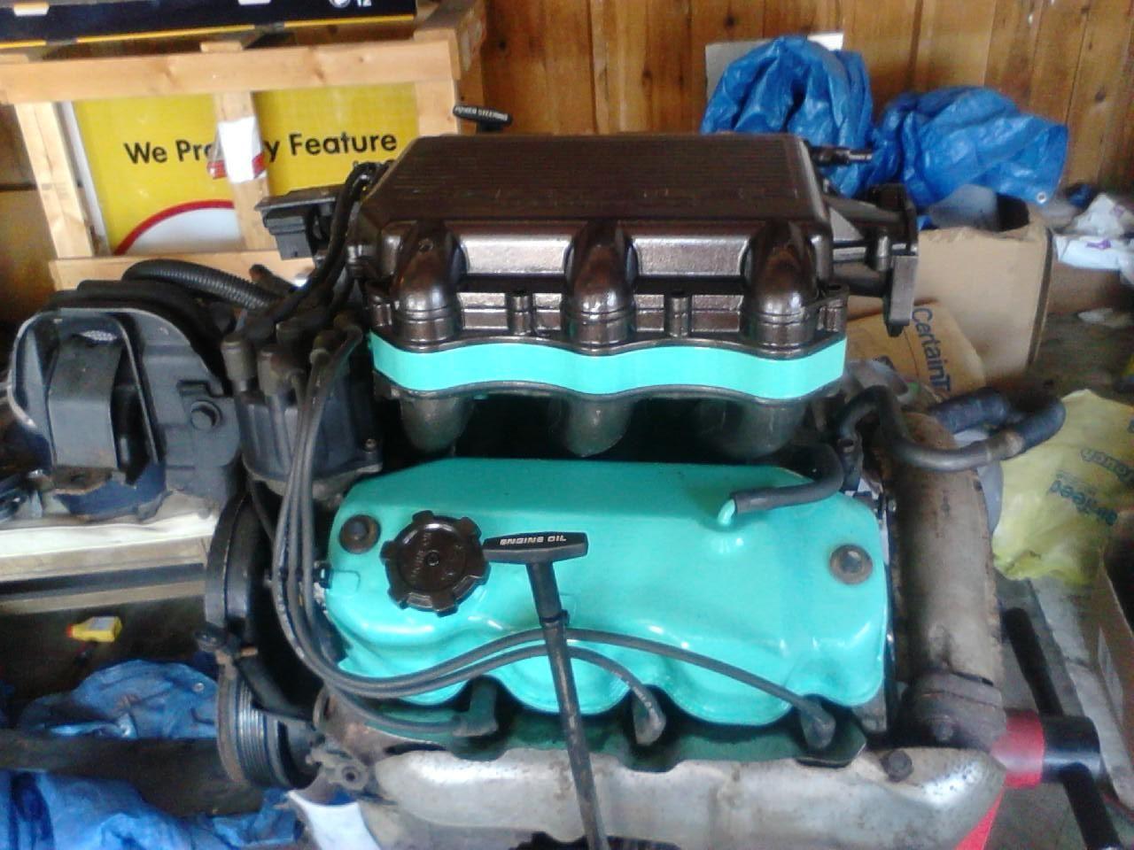 After screwing with the 4 cylinder for a couple months trying to sort cooling issues, I decided my van's old motor would be a better fit, so I set to work swapping wiring, refinishing engine bay, and throwing new gaskets/fresh paint on the engine: