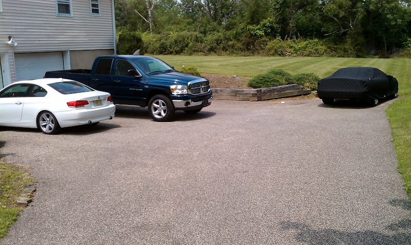 Truck in the driveway with soon to be departing 335 and covered SS (Vette is inside with wife's minivan - no ball busting allowed on that, sometimes you gotta make concessions!)