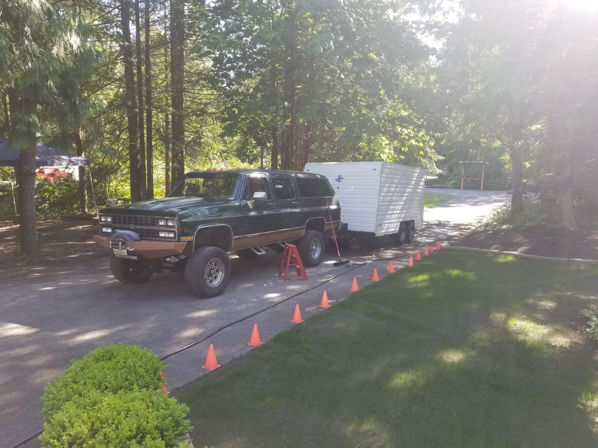 It has a 2" leveling kit, procomp wheels, 33" mickey thompson mtz's, magnaflow cat, edelbrock muffler, ebay off brand cold air intake with a k&n filter, rebuilt trans with a BD performance aluminum trans pan. Oh and air bags on the back for towing my trailer.