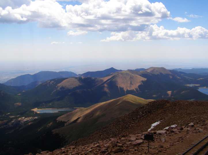 Ultimately I reached the carpark which adjoined the tourist shop at the top of the mountain. Around me were magnificent views of country many miles away, tens and probably hundreds of miles, and I was able to look down on adjacent peaks in the Rocky Mountains, as Pikes Peak towers above all of them for some distance. A rack railway ran to the top as well, and I went inside looking for appropriate souvenirs.