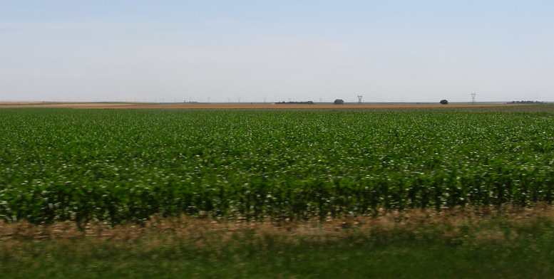 Corn and countryside. Between the towns, countryside and corn rolled out.
