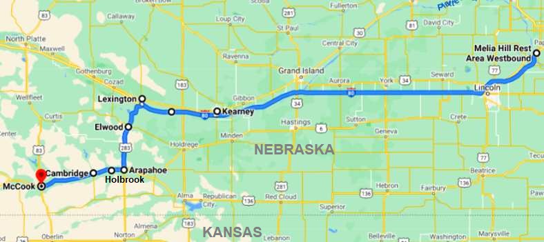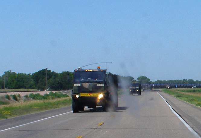 Army and a train. Between Arapahoe and McCook the road ran alongside a railway, between Holbrook and Cambridge I drove by both a train and some army vehicles heading East in convoy.And once I crossed the border into Kansas