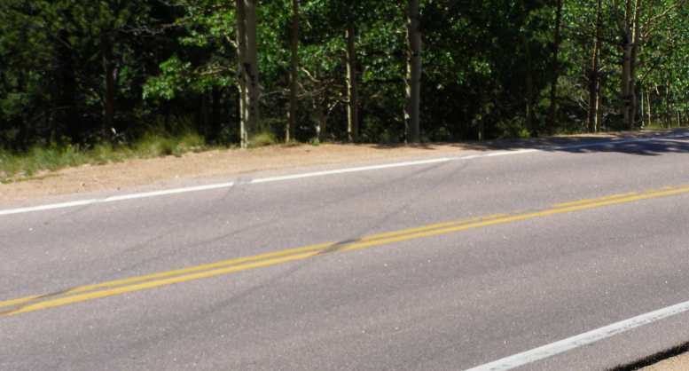 The Camry and marks of Competition. There were a number of places where tyre marks showed that competitors in the Pikes Peak International Hill Climb were sometimes over-stepping the mark.