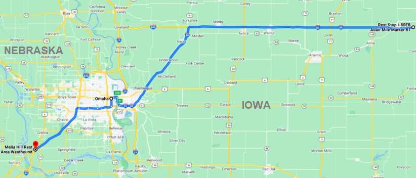 The day was evaporating fast as I left there. In the morning I had to be in Omaha, Nebraska to catch up with Rich Kinsley and a number of other '62 to '65 Mopar owners who were all arranged to welcome me as I passed through. I found the McDonalds, right on the I80 at Stuart, ate there and used their wi-fi, then went on a little further to the Adair Rest area to sleep the night.