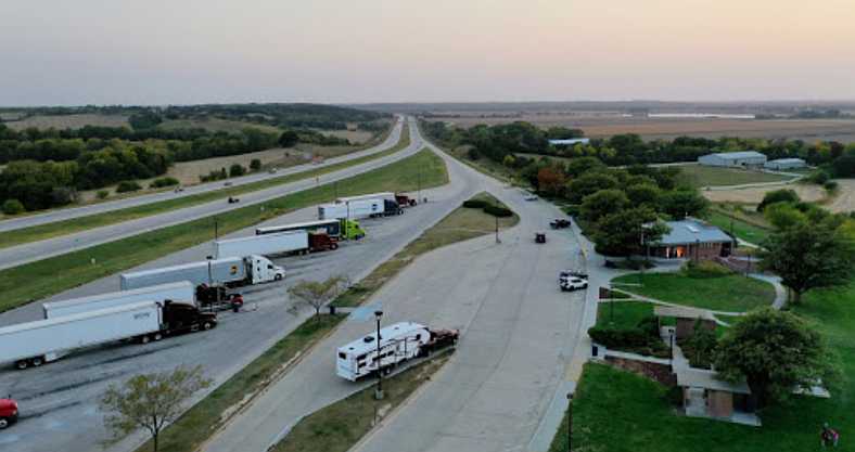 Melia Hill overview. Thanks to a drone, Vitaliy Gergov has shot this great picture of the Melia Hill Rest Area. It shows how complete a lot of US Rest Areas are with easy parking for both cars and trucks as well as good amenities.