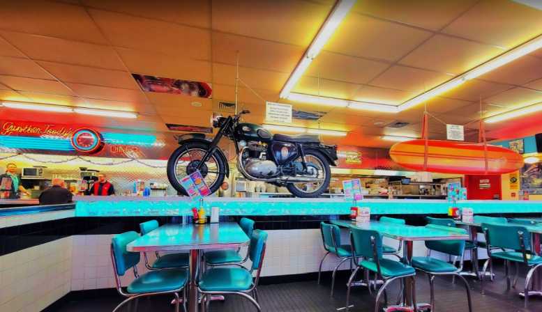 …which had a good view of the famous Pikes Peak and also a display of motorcycles among the tables.