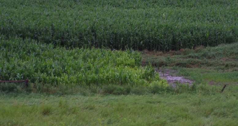 Corn not so lush. Still corn growing, but not much from here on.