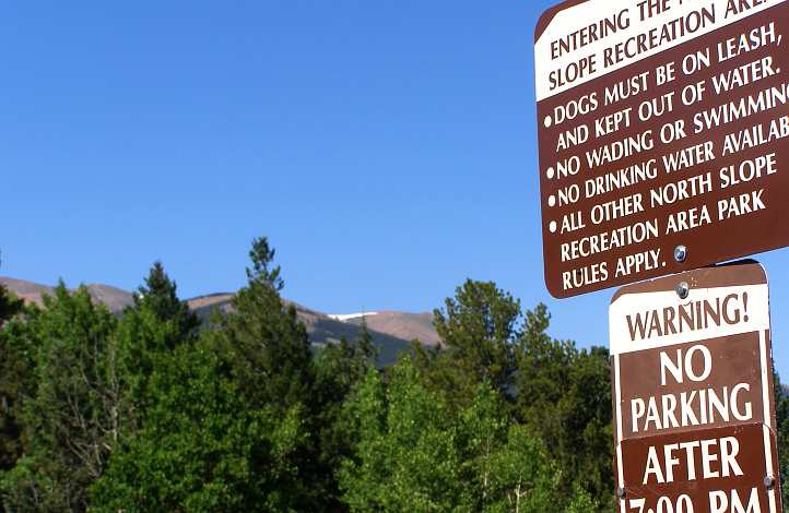 Warnings and snow. Some bossy people put up these signs, I’d venture. And look at the snow high up in the distance.
