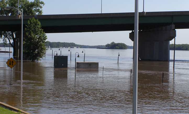 Walks awash. Riverside walkways completely hidden by the flooded Mississippi.