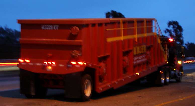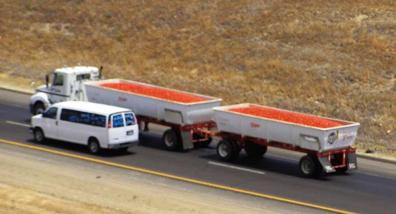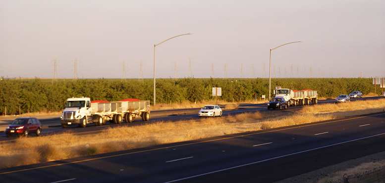 From there I drove off the Interstate and into Los Banos and went online at the McDonalds. Here I saw many more of those trucks coming through and learned that the fruit was tomatoes. Dozens of trucks, each with two of those bins, going through the town, it was fascinating to me.