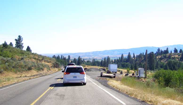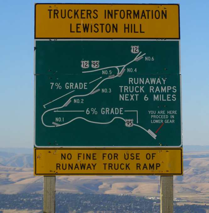 Lewiston hill. Looking ahead one can see this is a serious descent.
