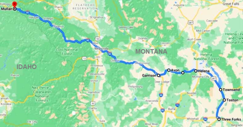 My idea was to not be too far from Spokane when I awoke, but I knew I'd be awake well before I could count on Jon being available there. So a place maybe 80 to 100 miles before Spokane would suffice. I took the off-ramp at a couple of places, but it wasn't until I had crossed the border into Idaho and took the exit to Mullan that I was happy to pull up and call it quits for the day having covered just over 800 miles.