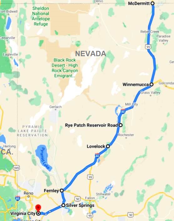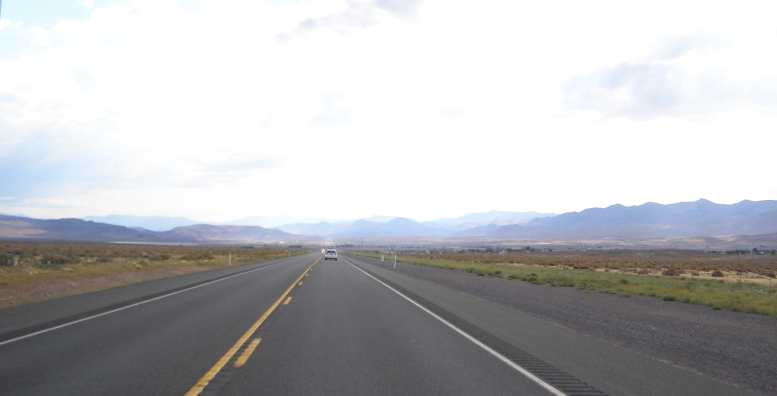 Sierra Nevada in sight. That’s the mountains in the distance, I followed Tom, we stopped once – at Lovelock – for something to eat.