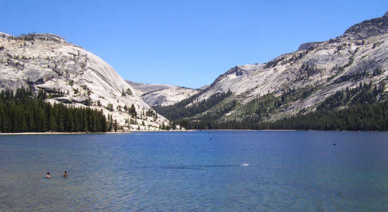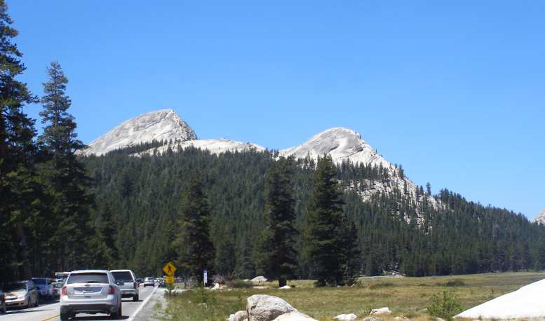 When I resumed driving it wasn't long before I crested the hill and then I entered the Yosemite National Park. Suddenly there was beauty all around, green trees, blue lakes, grey rock formations and lots of people enjoying their Saturday at play in the waters…
