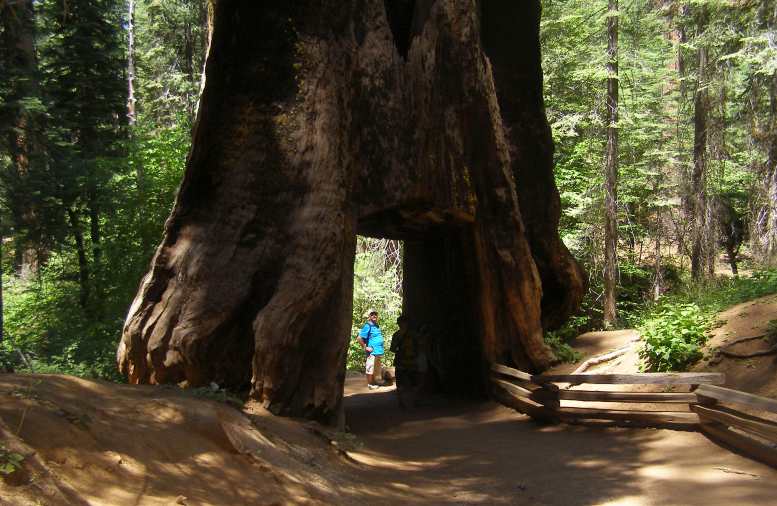 Cut through. In the days of stage coaches someone thought it a good idea to allow them to pass through this huge beauty.