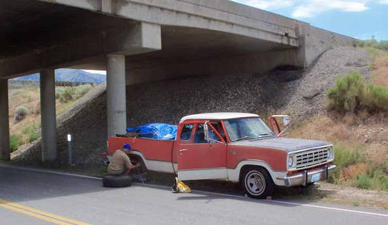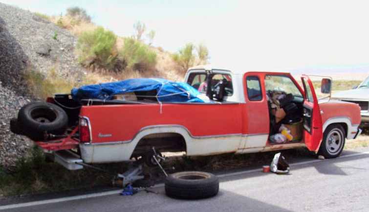 Spare brake discs and calipers added to the pile, a lot of new brake parts bought in Spokane earlier, and there was all the stuff I'd picked up along the way. The pickup had helper springs on the back and they were needed, while the extra cabin space was very handy.