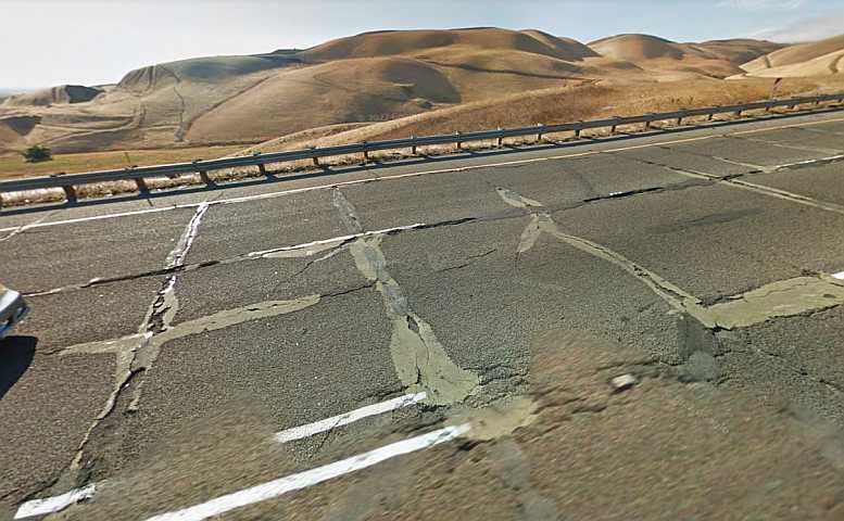 Corrupted concrete. Age, weather and heavy traffic had taken their toll on the highway across to Pleasanton.