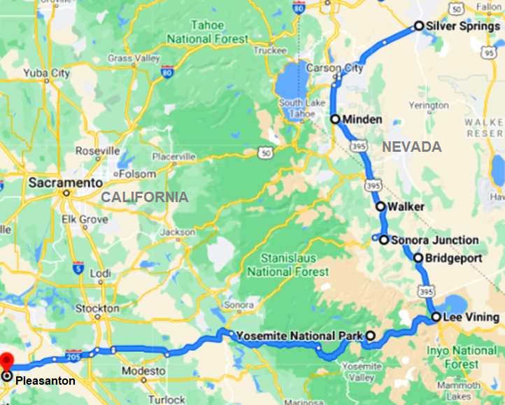 My plan for this day was to get to the home of Chris, my contact at BHJ Dynamics, and he lives in Pleasonton, California. Along the way I would see the sights of more of the Sierra Nevada, through Yosemite National Park (mainly to again see the giant sequoias) and some more countryside across from the mountains to the 'Bay Area' suburb where Chris lives.