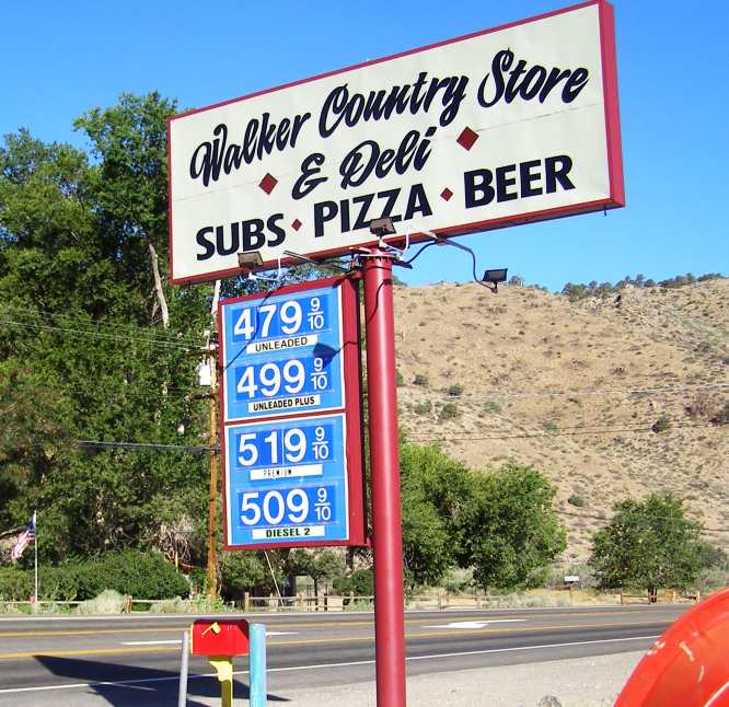 At Walker I saw the price of the fuel and decided I had to look for somewhere cheaper. But a mile or two later I looked more seriously at the fuel gauge and decided that I had to back-track and pay the premium price. Reckoning on a better price, I didn't buy much, and I drove on through Sonora Junction and Bridgeport and it was no lower.