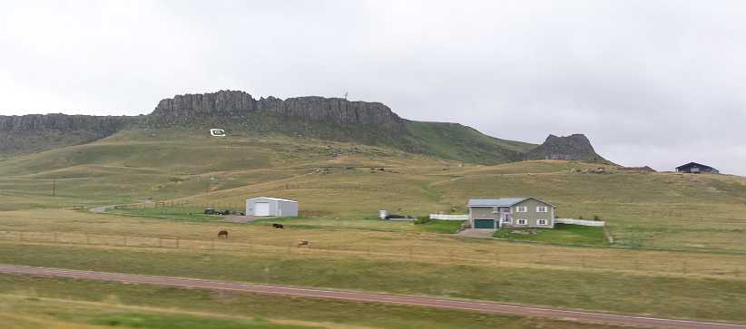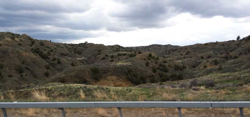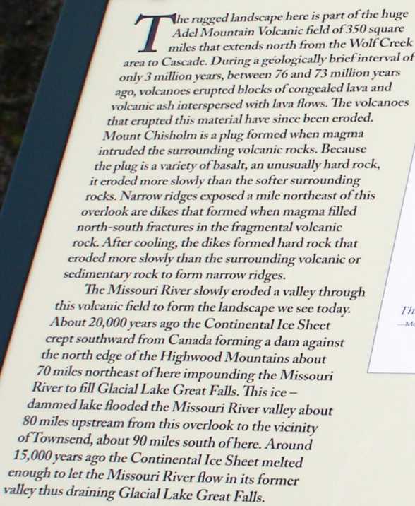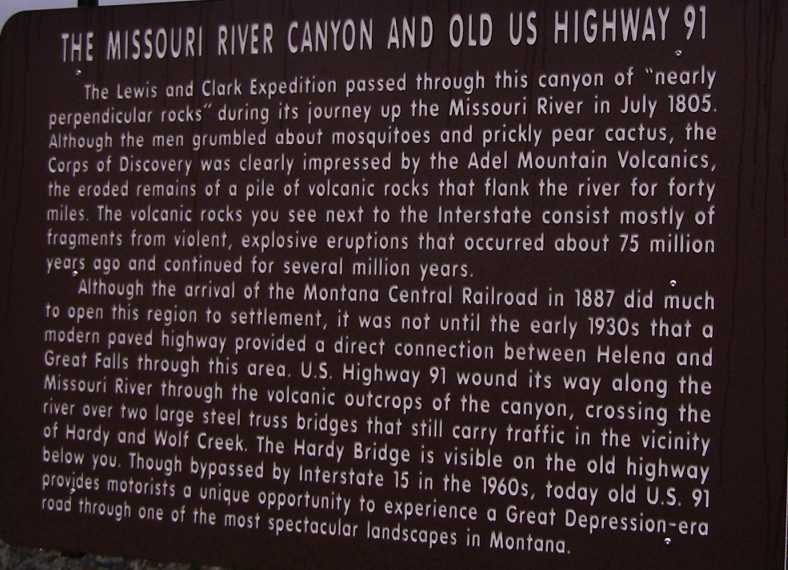...led to Great Falls. We slipped on by there and it wasn’t very far at all before we were treated to the sights of the Adel Mountain Volcanic Field near Cascade. This was an impressive area to see, where volcanoes have thrust rock masses up and eventually the Missouri River has carved its way through. We got a lot of pictures of this area: