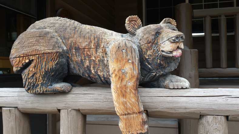 There was a lot of animal carvings around, both here and at other places. Totem poles, carvings of bears holding up verandah posts, providing seating, all sorts of things. Again, it attracted Sandra’s attention.