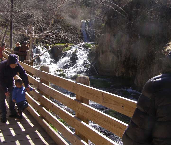 Running Eagle Falls. The desire to see a decent waterfall was overcoming Sandra, but it was several hundred yards’ walk through scrubland to find it!