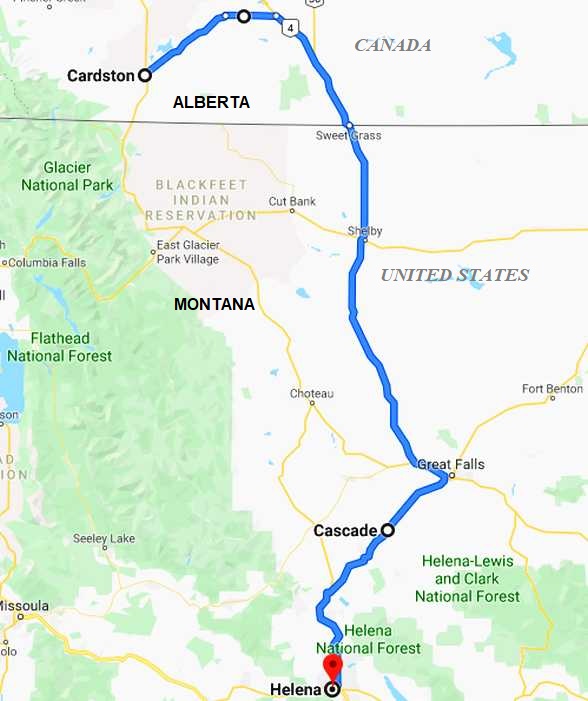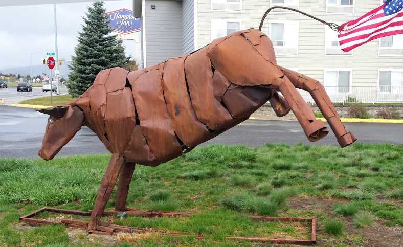 ...which were outside the ‘Smugglers Saloon’. And as we continued South to the border crossing we had little trouble re-entering the US and continued on the I15 towards our destination. Broad prairie grasslands s surrounded us as we kept heading South. The US town at the border was named ‘Sweet Grass’, and I guess it would be to the ever-present cattle.
