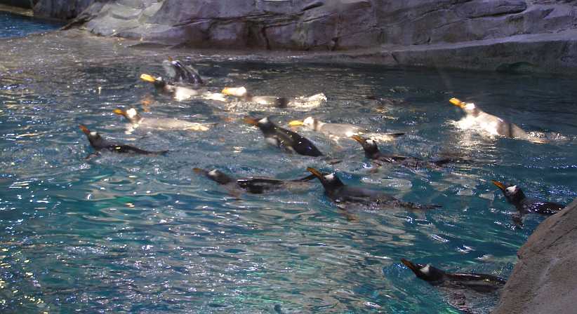 Birds of a different kind were to be found in the lavishly laid-out penguin display. You can look at them from above, from their own level and from under the water here: