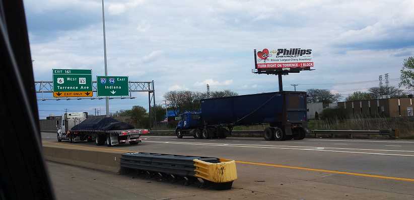 Busy interchange. As the I80 got into Lansing, just South of Chicago, it also became the I94 and the I 294, and there were junctions everywhere. Why it looks like we’re on the wrong side of the road here is because the truck in the far lane has come on from a side road and its entry to the I80, either the I94’s Northern arm (ultimately from Madison, WI and via Milwaukee), or the 394 from the South and was not complete until after the next interchange at Torrence Avenue. Check Google Earth for the co-ordinates 41°34’38.37”N and 87°33’554”W to see how it works.