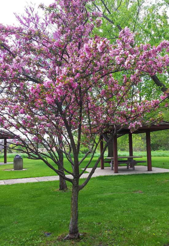 ...and we were in Illinois. A couple of hours later we pulled up at the Great Sauk Trail rest area and Sandra relaxed herself to take photos of the flowers growing there as well as other decorations: