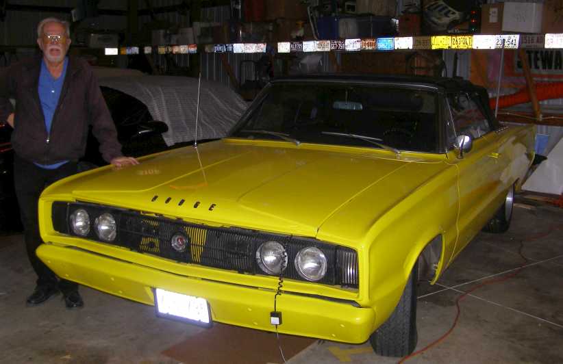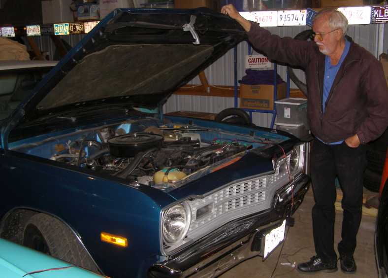 Hemi GTX/ I know this flies because I rode in it in Montana. Jerry peers under the hood of the Plymouth.