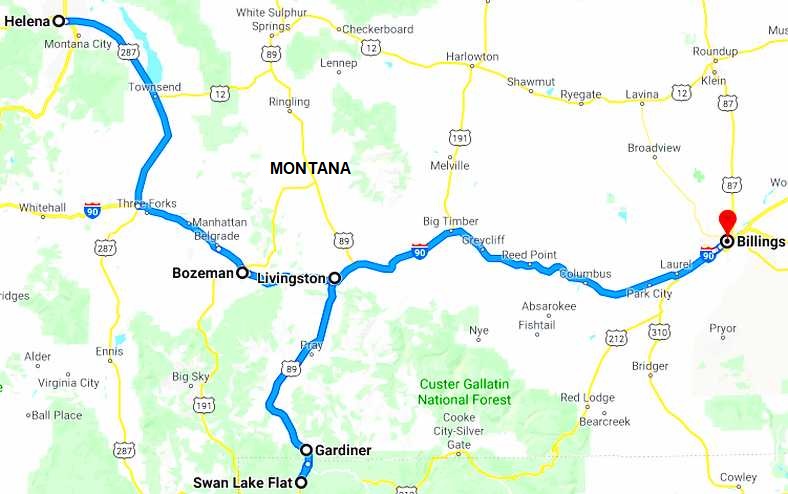 So we drove off. This day, now abbreviated by this early problem, would see us go through to Billings, though the plan was a visit to Yellowstone National Park and to proceed from the Western end of that park through to rejoin the I80 somewhere in Wyoming.