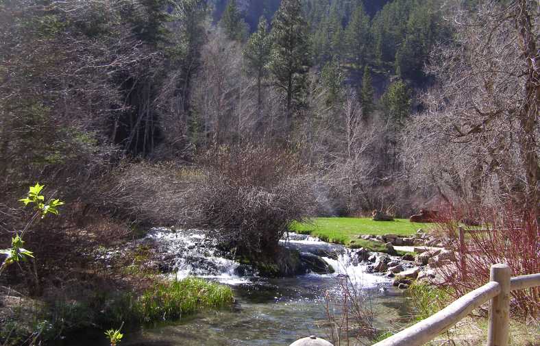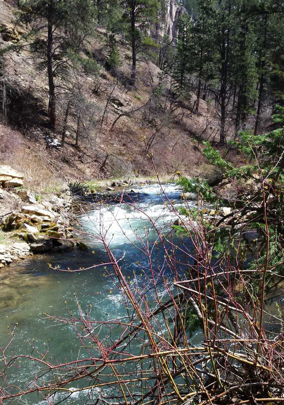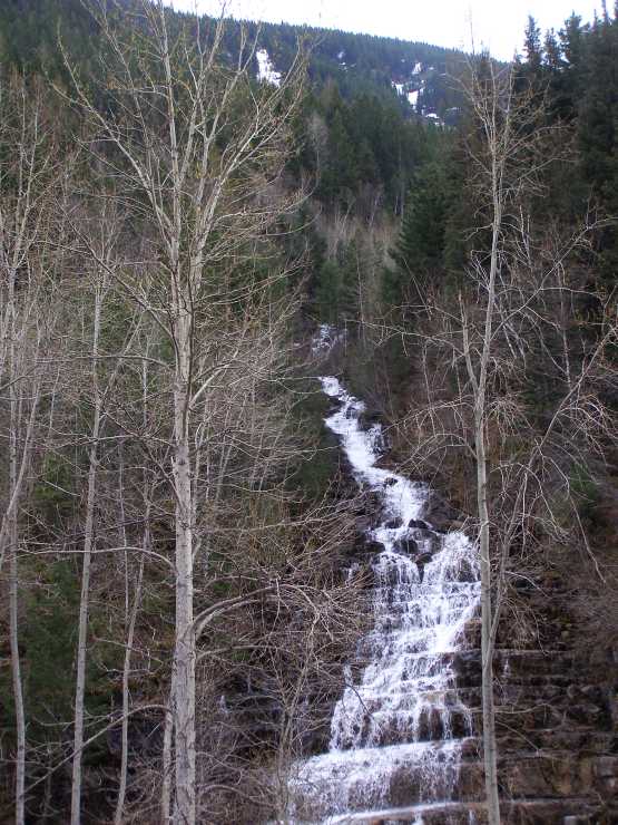 Waterfall. With all the melting snow there are plenty of opportunities for water to fall over the abundant rocks and ledges. This was a small one.