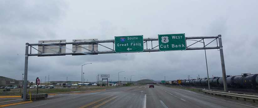 Shelby diversion. Back in the USA we could refuel at lower prices than we’d avoided in Canada. This goods train looks well-laden for cross-border goods trading.