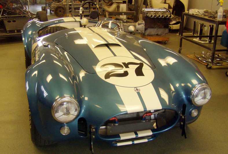 I looked over Rick's new in-the-embryonic-stages Mustang, which is getting the 570hp engine shown in preparatory stages in the pics, there was an E-type there too, while the ex-Can-Am car I'm sure was a Genie and I lost track of what the other car was. Except the 427 Cobra, I knew what that was all right, I saw one of them before... in 1965 at Lakeside... and that's Ron's pride and joy.