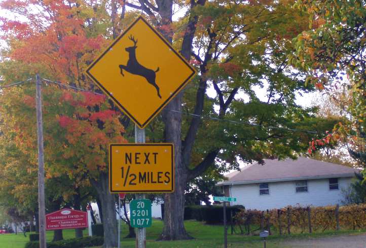 Well, I thought it was too good to be true, the car has given up the ghost again. Ray stopped to take a picture of a sign with a deer on it…