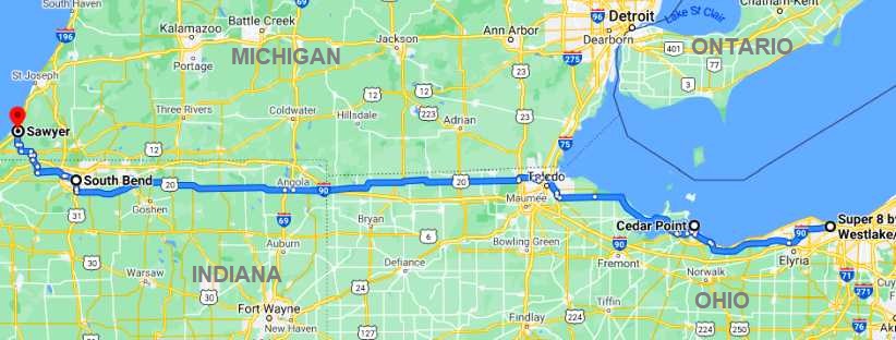 Our hope on the following day, Thursday, was to go up to Detroit and then across to Muskegan in Michigan. But getting out of Cleveland took ages and I decided to forego the Detroit visit and simply head across to South Bend where I had some more rear axles waiting to go into the back of the pickup. Other issues meant this would be our path for the day...