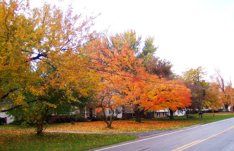 It has taken us forever to get this far. Of course, avoiding toll roads, seeing a fair bit of nice countryside and quaint towns, yards covered by beautiful coloured fallen leaves, at a place called Clyde we took some photos of them…