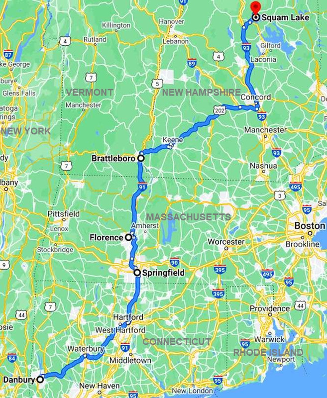 We hit the road and didn't stop again until we got to the Rest Area just in Vermont. There was a stack of people here and we had trouble finding somewhere to make our afternoon tea out of the sun. We couldn't waste any more time, though, as Squam Lake was still some distance away and we had to get back to Windham to see Neil. One thing in our favour, on these roads there were no dawdlers: