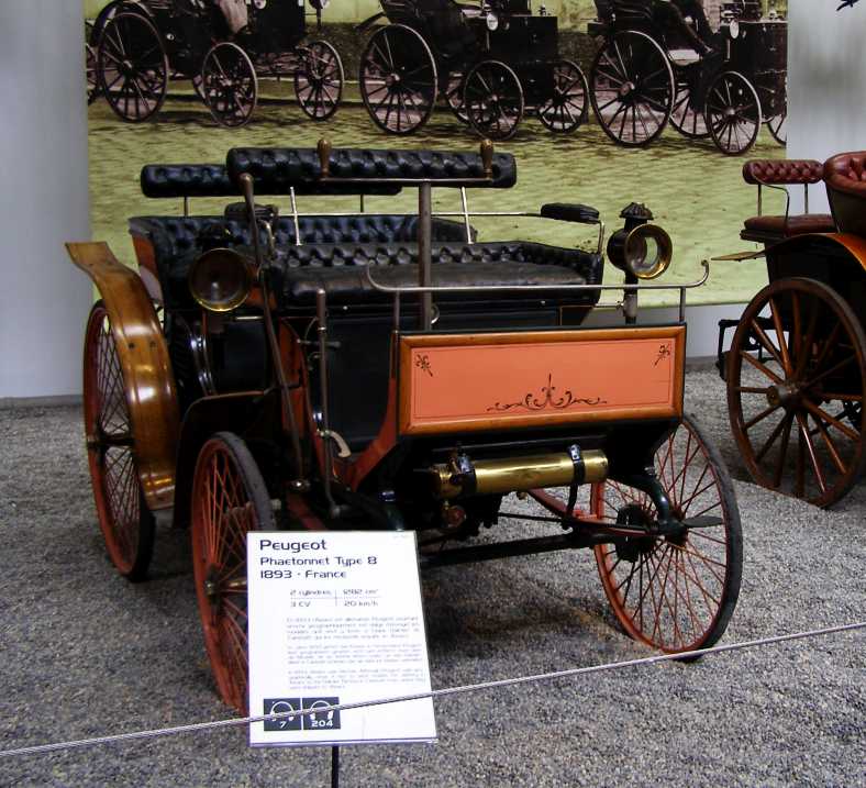 1893 Peugeot. In 1890 Peugeot built 29 cars, in 1899 they built 300, so there won’t be too many of these early models. Featuring a variation on the steering wheel but very much modeled off horse-drawn carriage style, it’s the oldest Peugeot I saw in the museum.