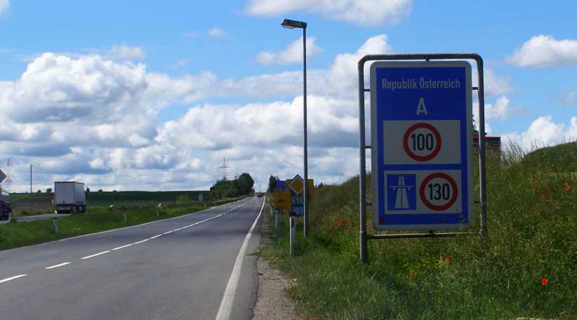 …followed, of course, by a sign foreshadowing the need to turn out my passport. One of the few borders I crossed in Europe where this was necessary.