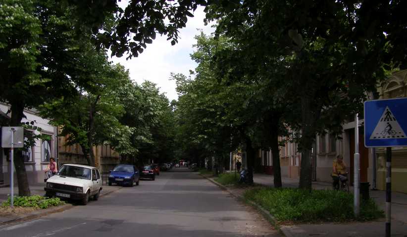 Cyclists. The flat country in Senta lends itself to cycling for local transport. There are three cyclists in this photo.