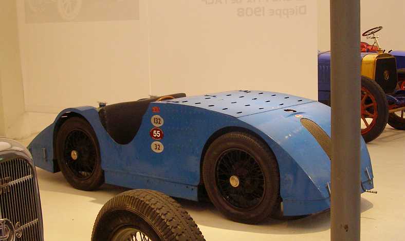 A bigger car hiding in the dark, older as a 1904 model, it was the first car built by the Swiss firm and entered for the Gordon Bennett race. It failed miserably, however, as a wheel broke prior to the start. Later it achieved success in a race in Paris.