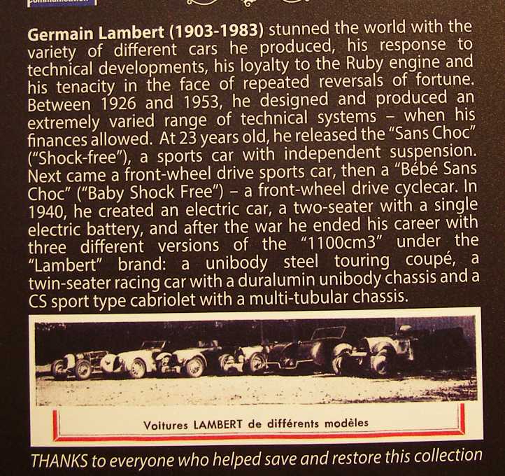 Lambert history. This tells the story of Lambert’s cars, another mentions that after it all came to an end he went into the restoration business.