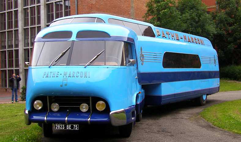 Pathe Marconi. There was little to be found about the usage of this vehicle, but the musical intonations on the side might indicate it was something to do with entertainment. Pathe, of course, produced newsreel movies.