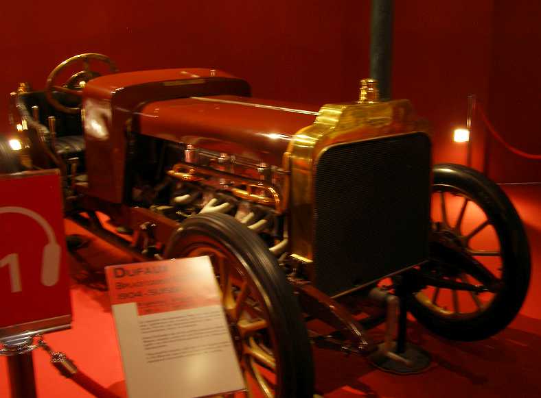 1904 Dufaux racer. Sporting an eight-cylinder engine of over twelve litres, this was the first car built by Dufaux of Switzerland.