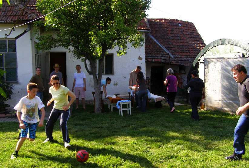 Hospitality, on the other hand, was abundant. I was ushered into the kitchen where I was quickly offered a drink and snacks. We talked about common subjects and before long we were taking the table out of the kitchen to set up in the shade outside as more people were arriving. And someone brought a soccer ball.