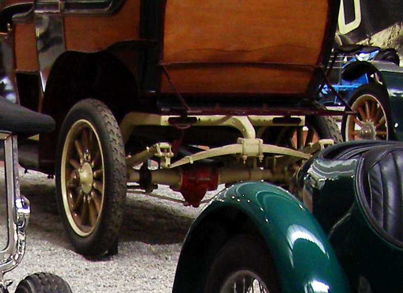 Dating from the same year is this Menier. Not my photo, but I did take the second one because I was intrigued by the springs everywhere. The Menier was a one-off, built by chocolate manufacturer (etc…) Gaston Menier in collaboration with Panhard and Levassor.
