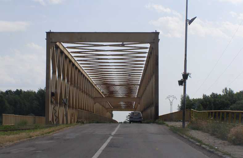 The bridge. The bridge between Senta and Coka looks very plain, a better looking one had been there but in World War 2 it was bombed and it still lies in the mud below this one.